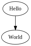 A "Hello World" example made by giving the command: echo "digraph G {Hello->World}" | dot -Tpng >hello.png